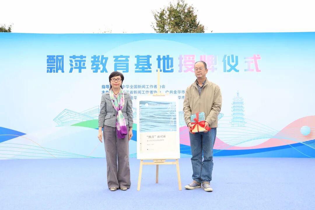 活动现场,浙江日报报业集团总编辑、党委副书记、浙江省记协副主席李杲为“浙江飘萍教育培训基地”授牌;浙江传媒学院副校长、教授李文冰介绍《“飘萍”面对面:浙江飘萍奖人物案例解析》书籍情况并赠书;婺城区委书记帅朝晖致辞;与会领导嘉宾共同参观飘萍教育基地。