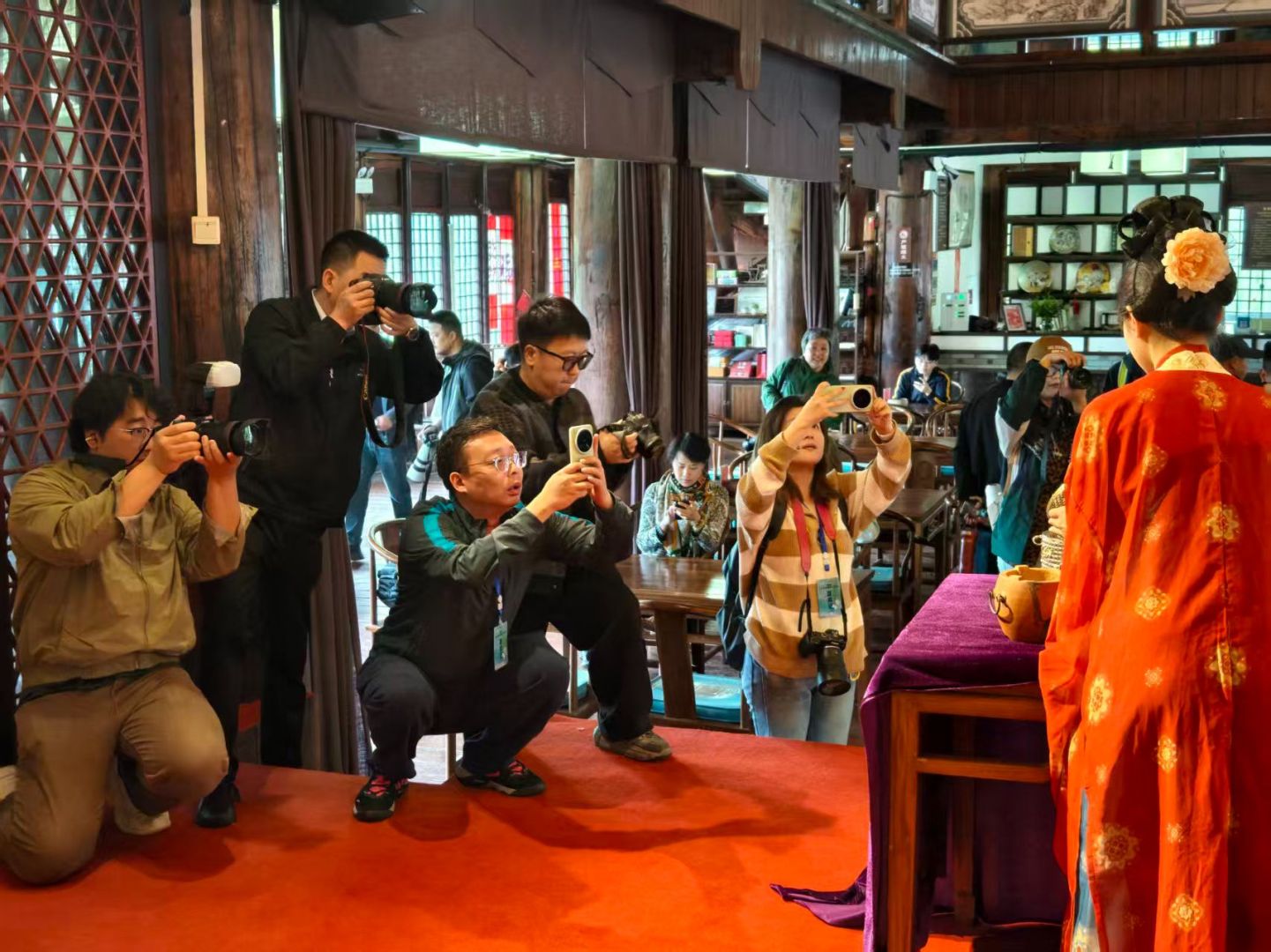 4月13日,与会人员兵分两路,深入吴兴区、长兴县等地,走进义皋古村落、织里童装智能化工厂、大唐贡茶院、太湖9号公路等点位,用镜头定格湖州的绿水青山与发展蝶变,以文字记录这座历史文化名城的江南韵味与时代活力,全方位展现湖州在“两山”理念引领下的发展成就与民生温度。